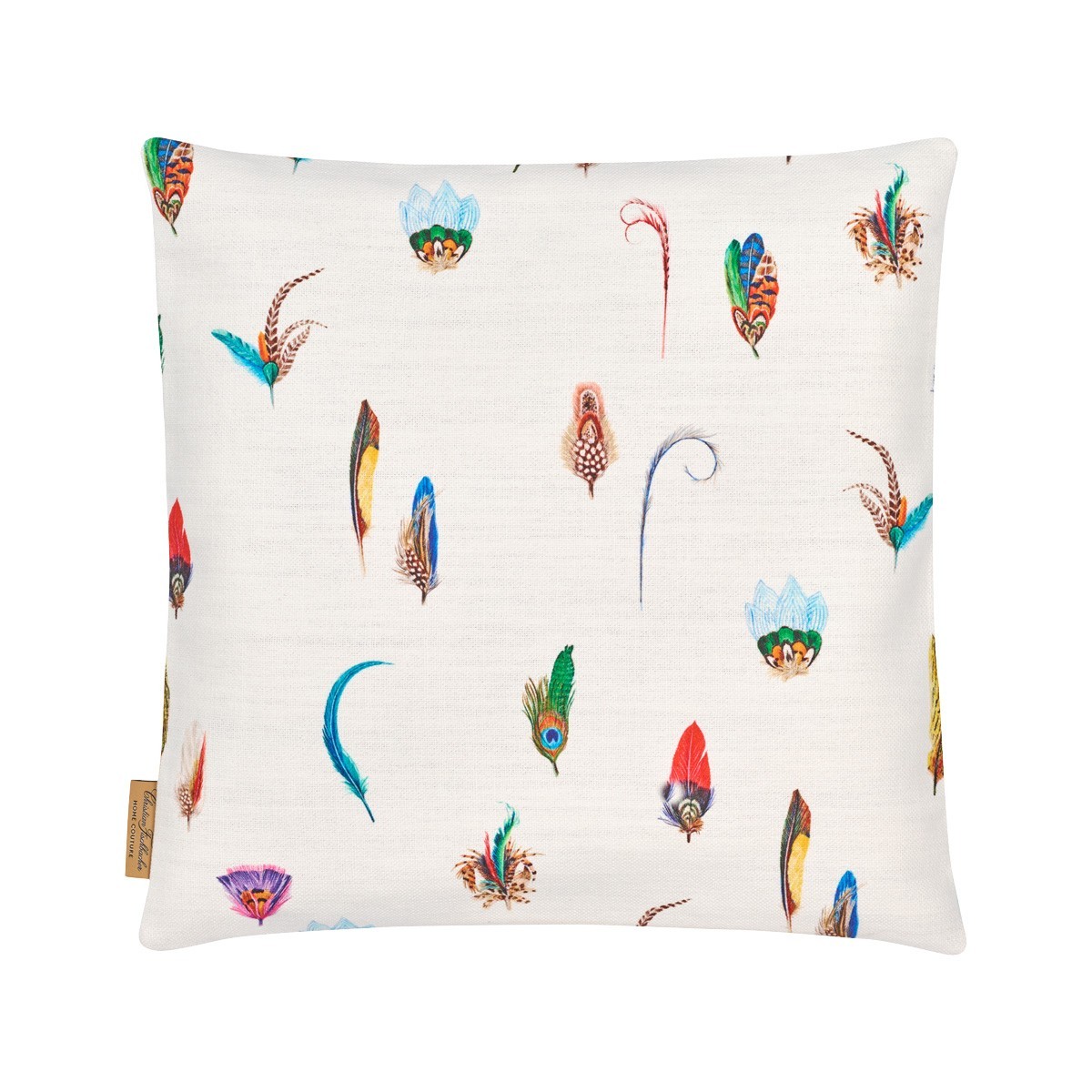 Coussin Canvas Feathers en coton de Christian Fischbacher: plumes légères et motif ornemental pour une déco élégante et naturelle chez vous.