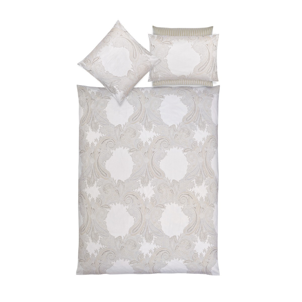 Le linge de lit Grace de Christian Fischbacher est un chef-d'œuvre du tissage jacquard, alliant qualité exceptionnelle et savoir-faire artisanal.
