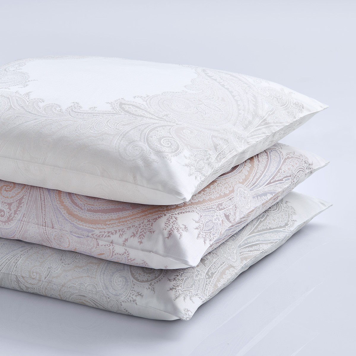 Grace de Christian Fischbacher: linge de lit jacquard luxueux avec motif cachemire – raffinement italien en or, argent et rose.