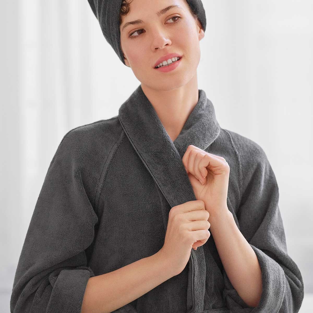 La sua spugna morbida e avvolgente regala una sensazione di benessere immediata, sia dopo un bagno rilassante che al mattino per iniziare la giornata. Il design unisex, pensato per donna e uomo, è dotato di sciallatura classica, cintura in vita e comode tasche laterali.