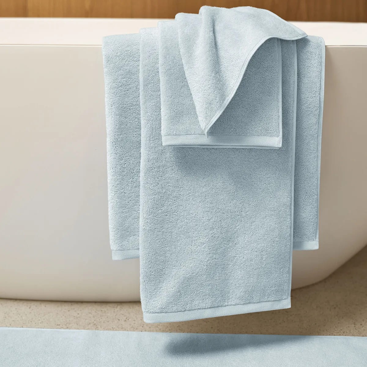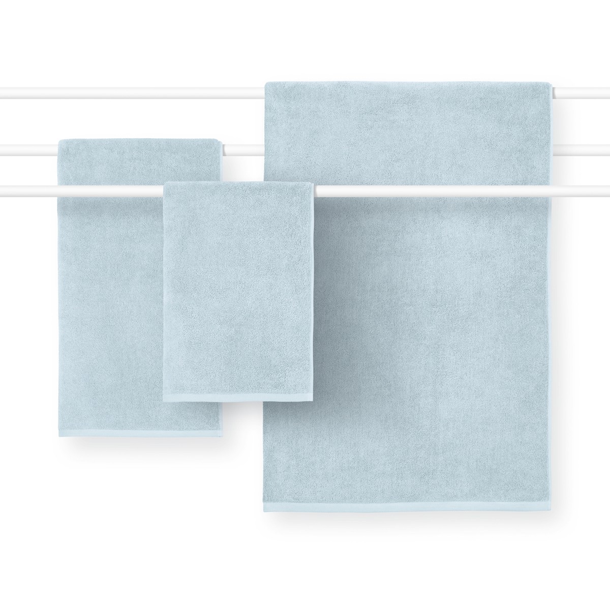 La gamma comprende sei tipologie: panno per il viso 30x30cm, asciugamano per ospiti 40x65cm, asciugamano 50x100cm, telo doccia 70x140cm, telo bagno 100x150cm, tappetino doccia 50x80cm. Gli asciugamani hanno un peso di 550 g/m², mentre il tappeto da doccia raggiunge 1’000 g/m², per una maggiore morbidezza e stabilità sotto i piedi.