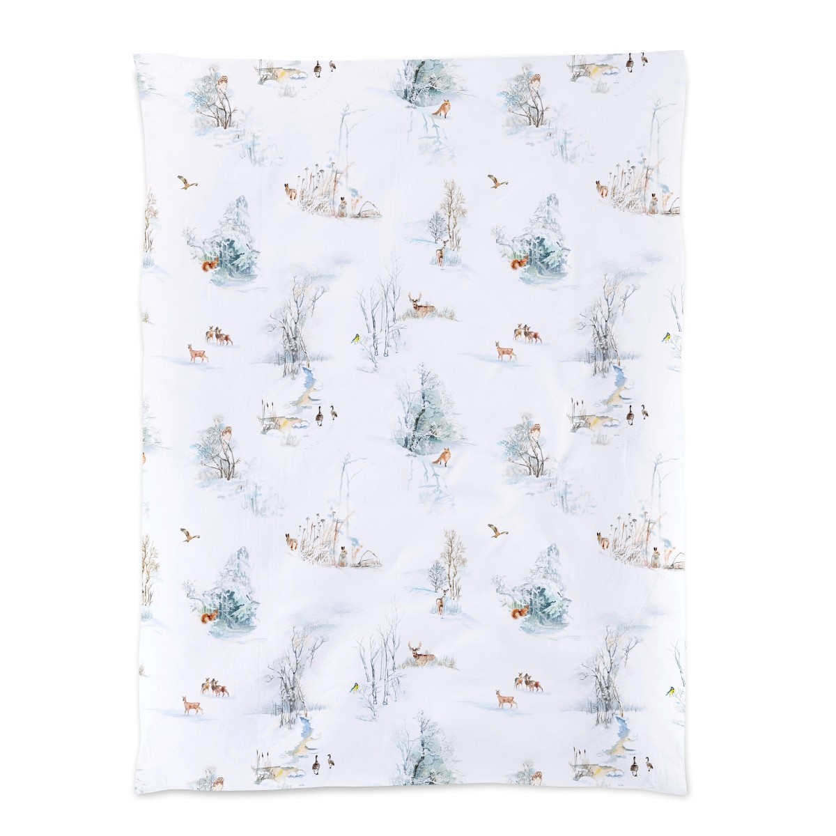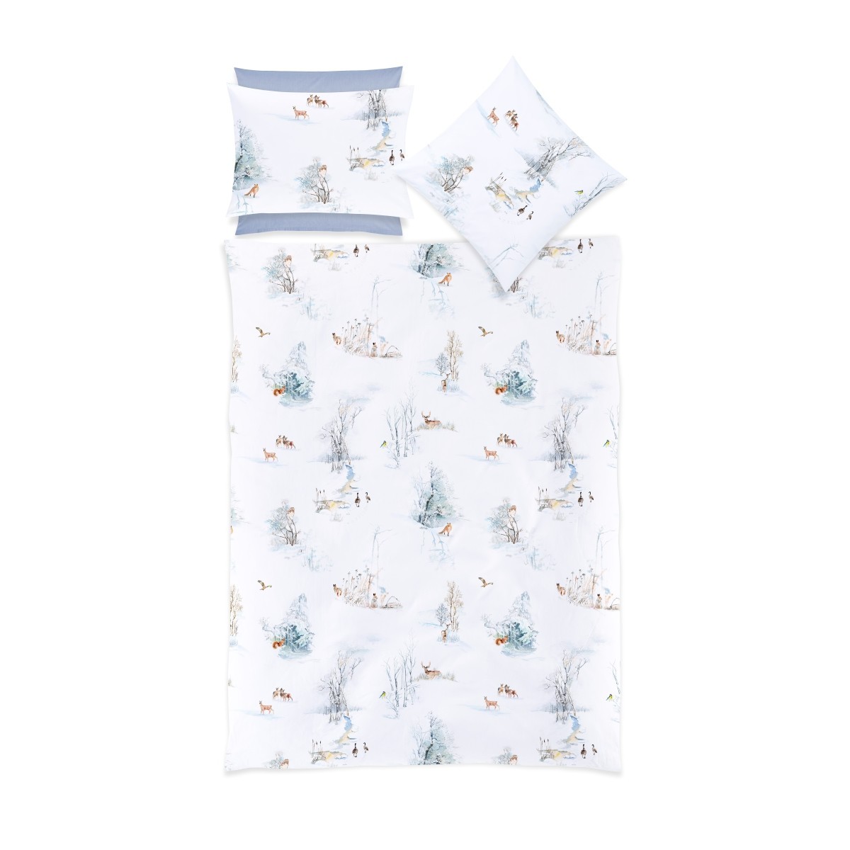 Finja di Christian Fischbacher: animali e paesaggi invernali su raso satin – comfort e poesia nella tua camera.