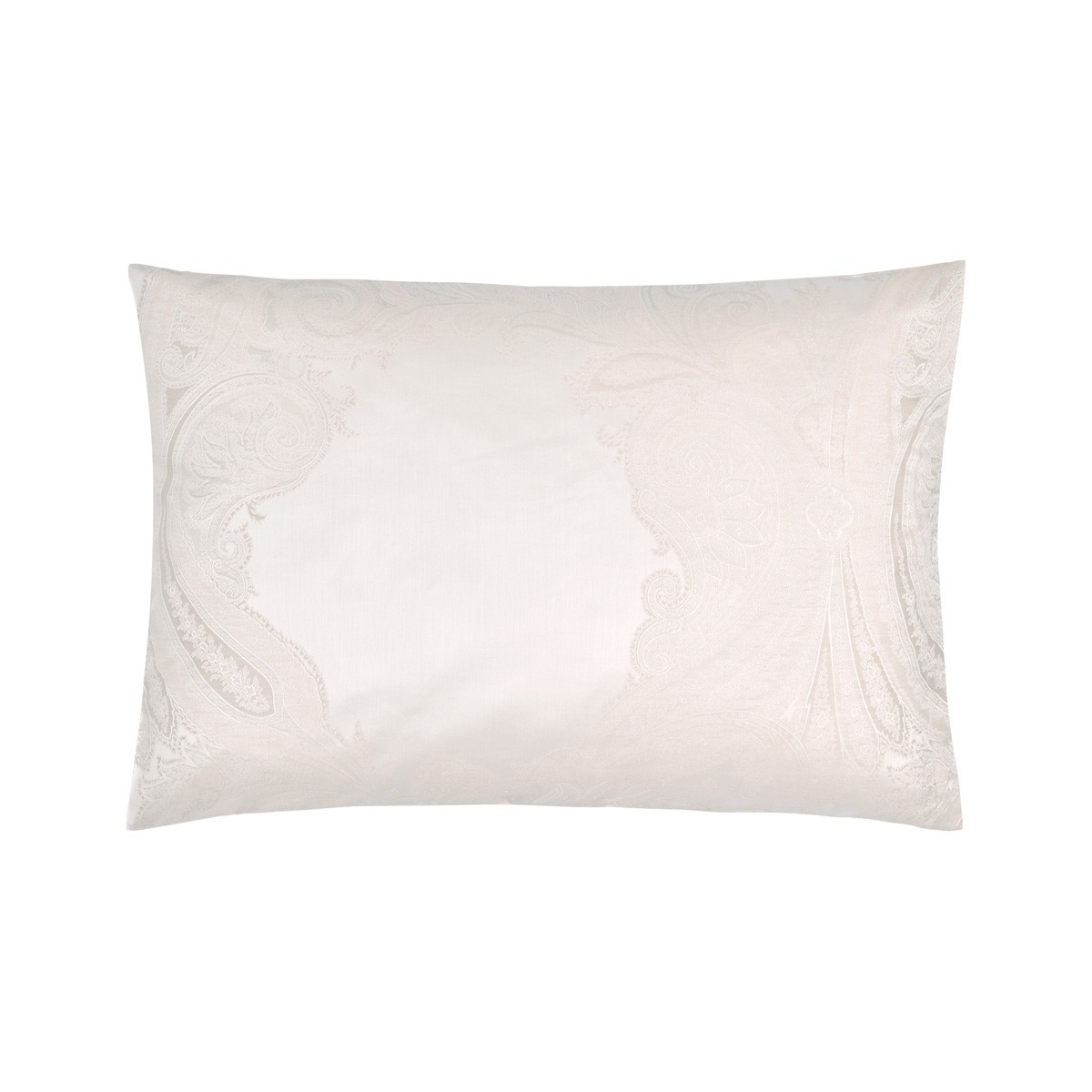 Il sontuoso motivo paisley viene tessuto in una delle migliori manifatture italiane, in delicate sfumature di oro, argento e rosé. L’intreccio sapiente di colori in ordito e trama crea un effetto visivo profondo e cangiante, che dona alla biancheria un’eleganza senza tempo.