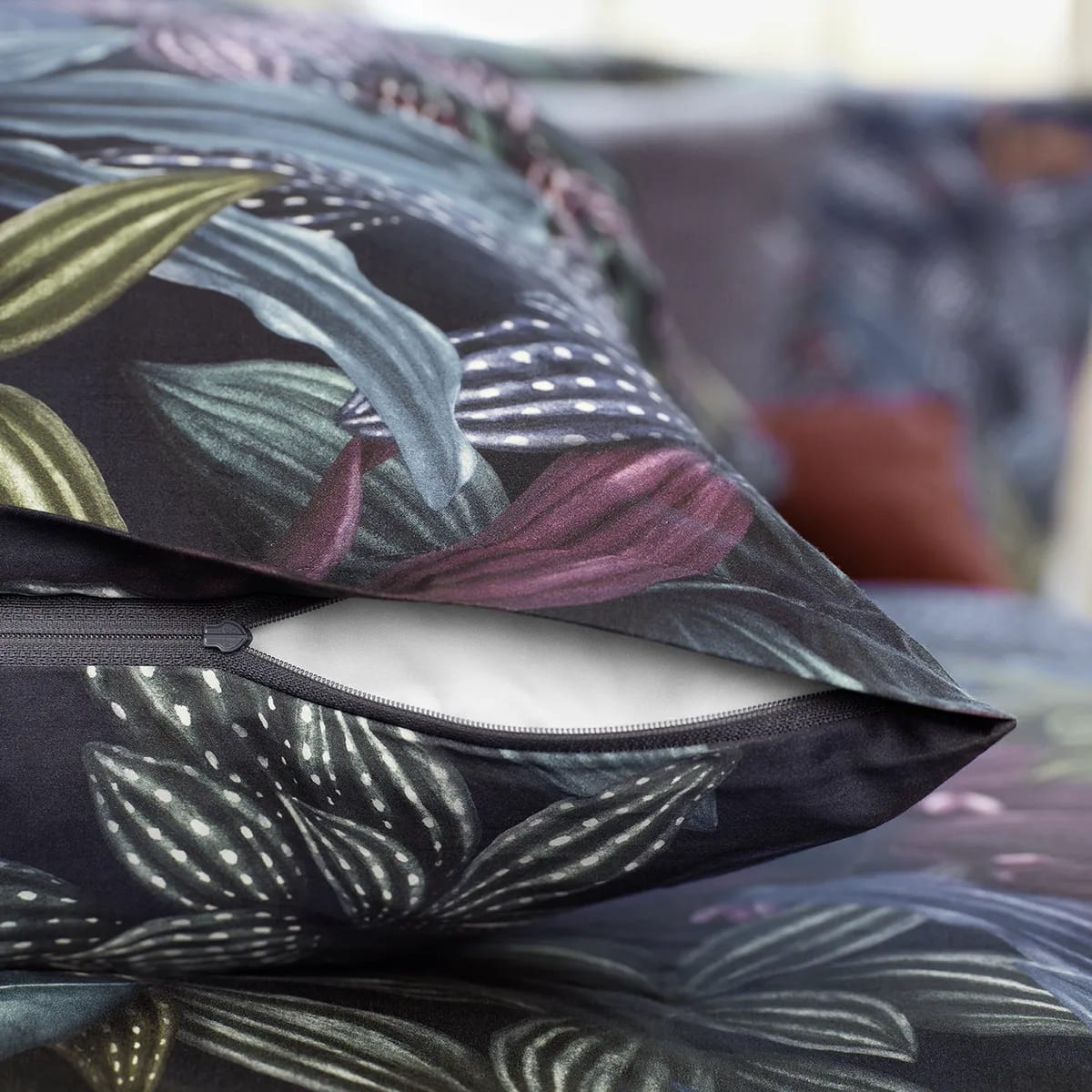 Con Aramis in Jersey Royal, Schlossberg fonde arte e comfort in una biancheria da letto che invita all’evasione. Il design rappresenta una foresta fantastica e misteriosa, dove foglie dai contorni morbidi si sovrappongono in una danza silenziosa. Le forme e dimensioni variano, creando profondità visiva, mentre le tonalità gouache – rame luminoso, magenta, oliva, verde acqua e blu royal – donano intensità e poesia al disegno.