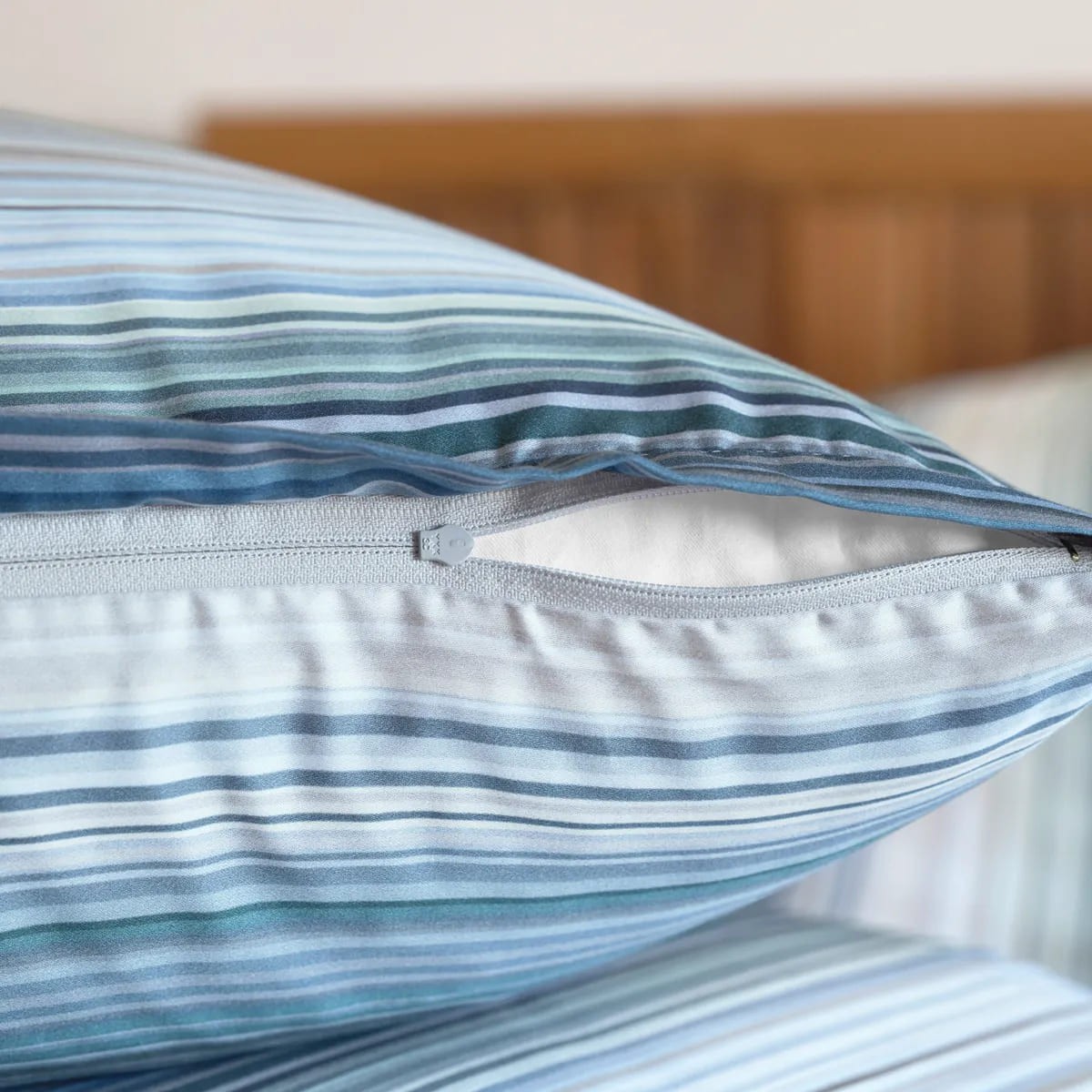 La biancheria da letto Schlossberg Loris in jersey riprende il caratteristico disegno a righe sottili verticali, offrendo una sensazione di comfort ancora più rilassata. Le linee continue creano un raffinato effetto ottico, che dona profondità e movimento alla superficie, mantenendo un’estetica ordinata e contemporanea.