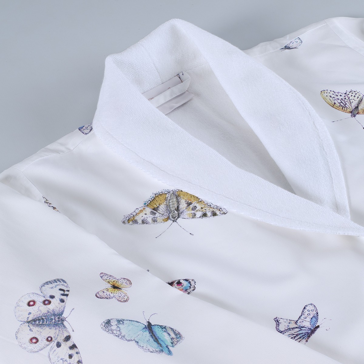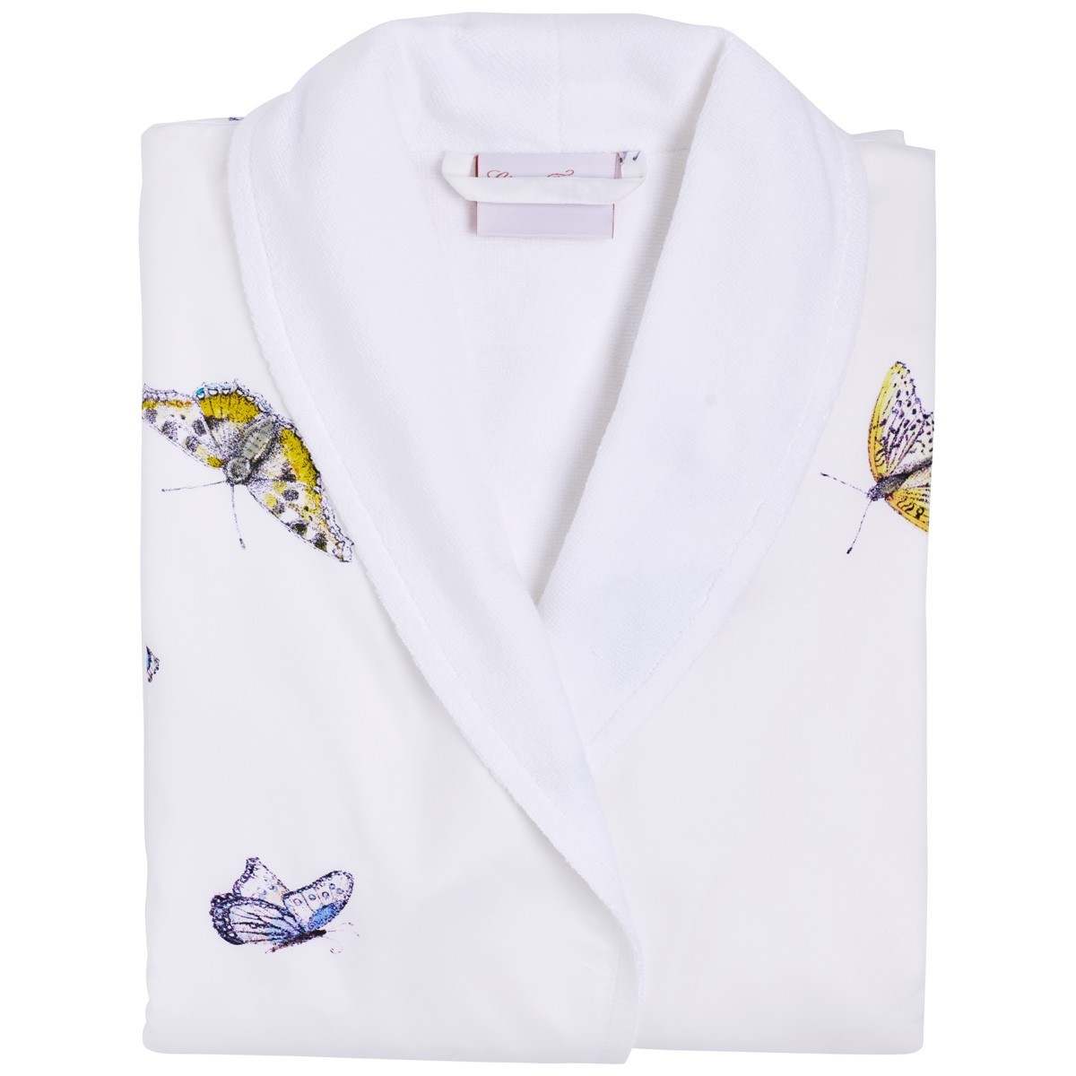 Vestaglia Vanessa in 100% cotone di Christian Fischbacher: farfalle eleganti per comfort e stile raffinato a casa.